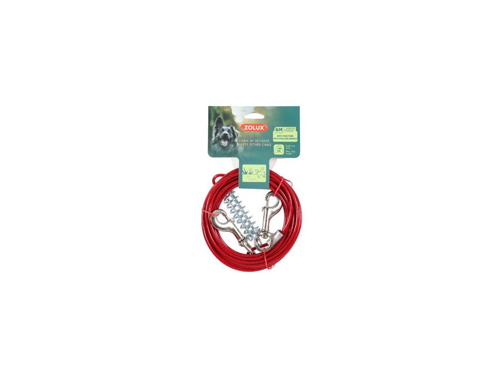 Uvazovací lanko zaručuje bezpečné přivázání psa v terénu, například na zahradě nebo na výletě. Vybaveno ocelovou karabinou a pružinou tlumící nárazy, poskytuje zvířeti velkou volnost pohybu a zároveň eliminuje riziko úniku. Vyrobeno z odolných materiálů nejvyšší kvality - ocelové lanko potažené červeným plastem. Má antistrečový systém a je vhodný pro psy vážící méně než 45 kg.