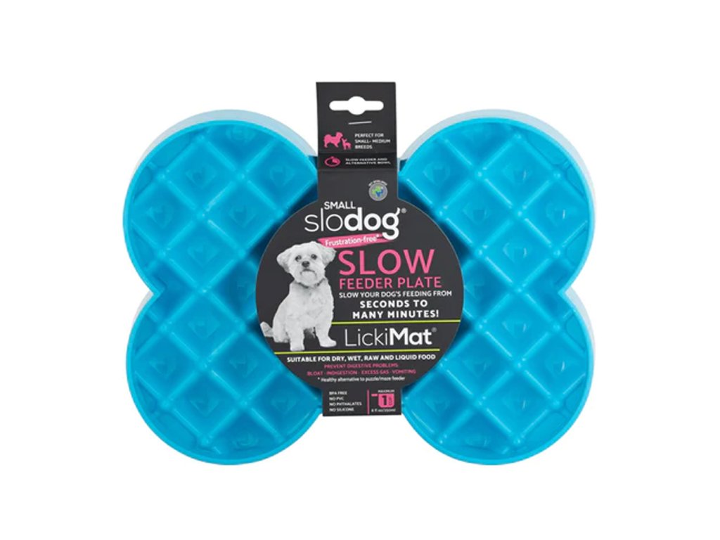 Zábavná miska SloDog pro menší pejsky zpomaluje jedení, funguje i jako lízací podložka.Některé zpomalovací misky mohou být pro psa příliš složité a mohou u něj vyvolávat stres ze složitého dobývání svého oblíbeného jídla. Miska SloDog má mnohem větší plochu pro krmení než obyčejná miska a zároveň nemá nijak složité tvarování dna, což psovi dopřává pocit, že má všechno jídlo na očích a bude žrát bez námahy. Ale pozor! Dno má důmyslné tvarování!