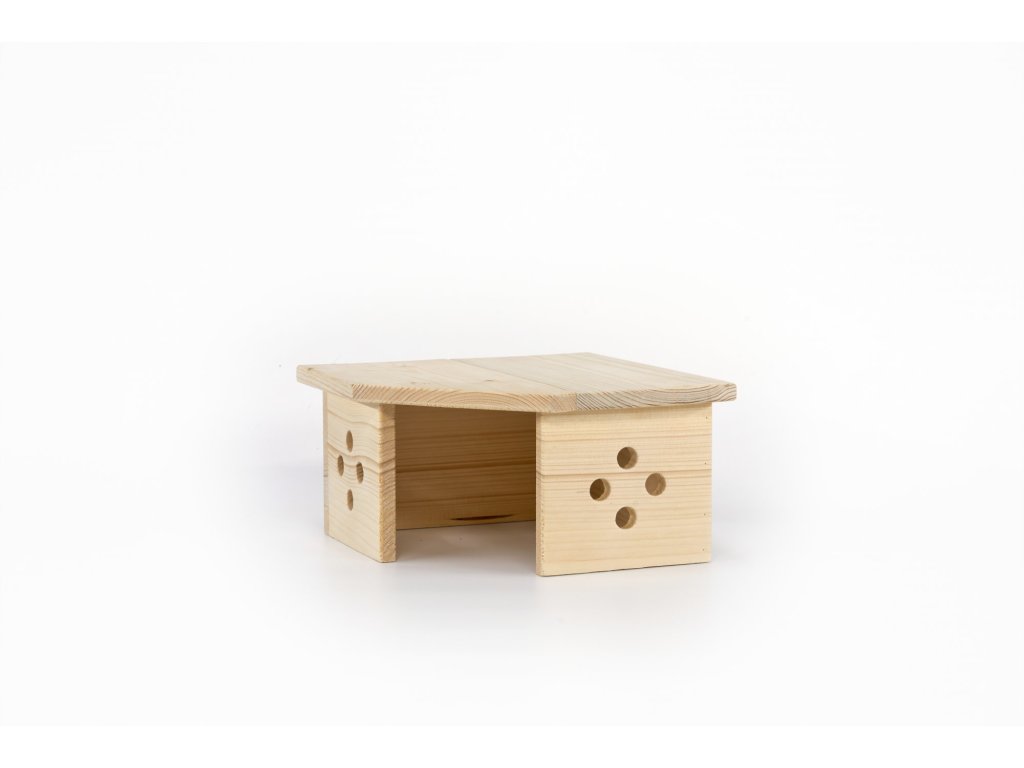 Limara Domek rohový morčeDřevěný přírodní domek pro morčata a jiné hlodavce velikosti morčete, který poslouží vašemu mazlíčkovi jako útulný úkryt a pohodlné místo ke spánku. Zároveň vašeho miláčka zabaví. Díky ploché střeše se může uvelebit i na domku, případně na něm uspokojit svou potřebu hlodat. Domek je totiž vyrobený z masivního dřeva a jeho ohlodávání je tak pro hlodavce zcela bezpečné. Díky trojúhelníkovému tvaru lze domeček umístit do rohu klece.