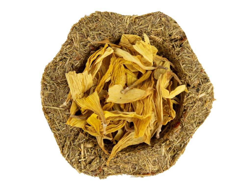 Složení: Luční traviny, byliny, semena travin, sušená zelenina, slunečnice.