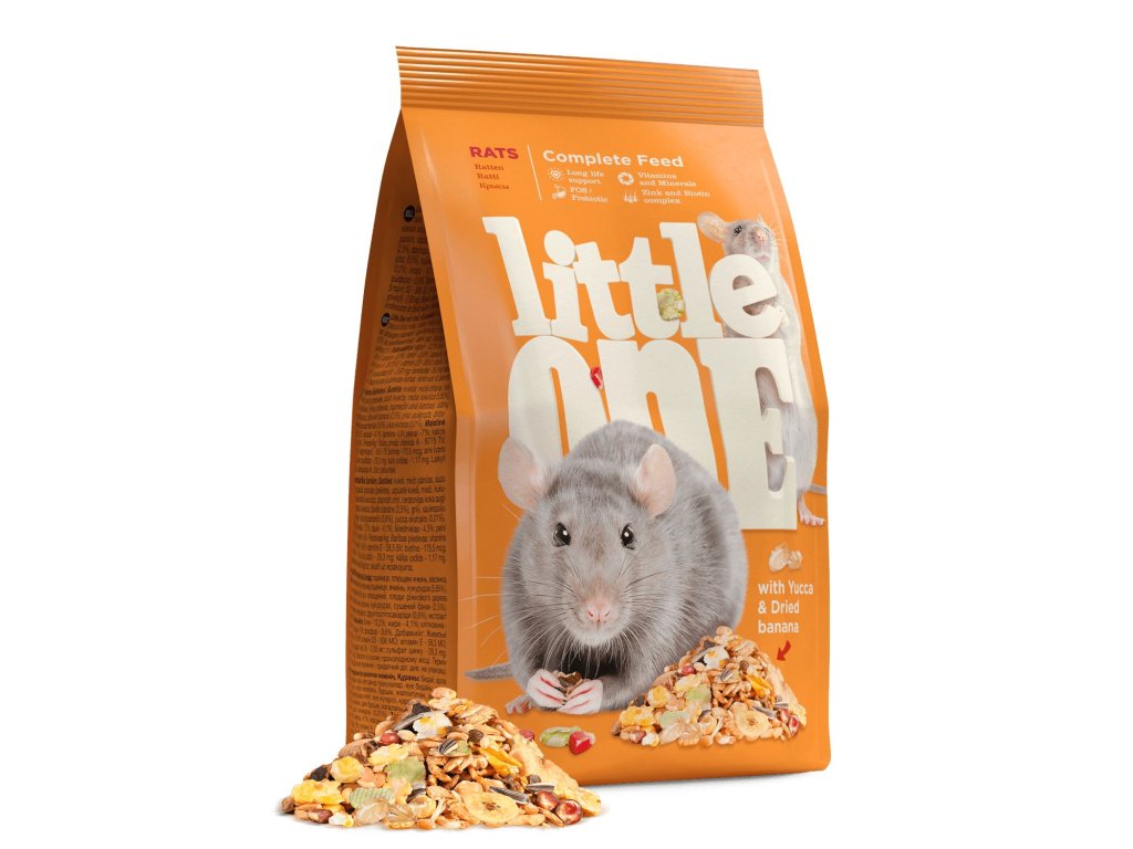 Little One směs pro potkany 900gKompletní krmivo pro potkany obsahuje potřebnou složku bílkovin, tuků, uhlohydrátů, minerálů a vitamínů v obilninách a zelenině. Jeden potkan spotřebuje denně 20-30 g podle velikosti a potřeb zvířete.
