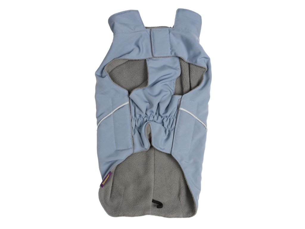 Bunda má pružný břišní díl, který se dobře přizpůsobí psí postavě , ovor na vodítko a gumový úchyt na ocásek.