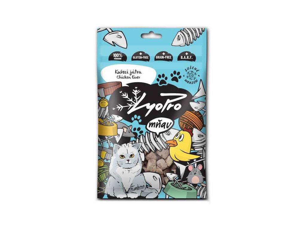 Křehká kuřecí játra si díky šetrnému sušení mrazem (lyofilizaci) zachovávají své aroma, strukturu i plnou chuť, kterou kočky milují. Jde o ideální volbu pro BARF (krmení syrovou stravou), kočičí alergiky a celiaky. Další výhodou lyofilizace je dlouhá trvanlivost. Pamlsky se vyrábějí z čerstvých kuřecích jater, která jsou jedním z nejlepších zdrojů vitamínů a minerálů. Obsahují až 100× více živin než svalovina! Při sušení mrazem navíc nedochází ke znehodnocení těchto živin. Jde tak o zdravou, lehkou a vysoce výživnou odměnu bez přidané chemie, obilnin, konzervantů a jiných balastních látek.