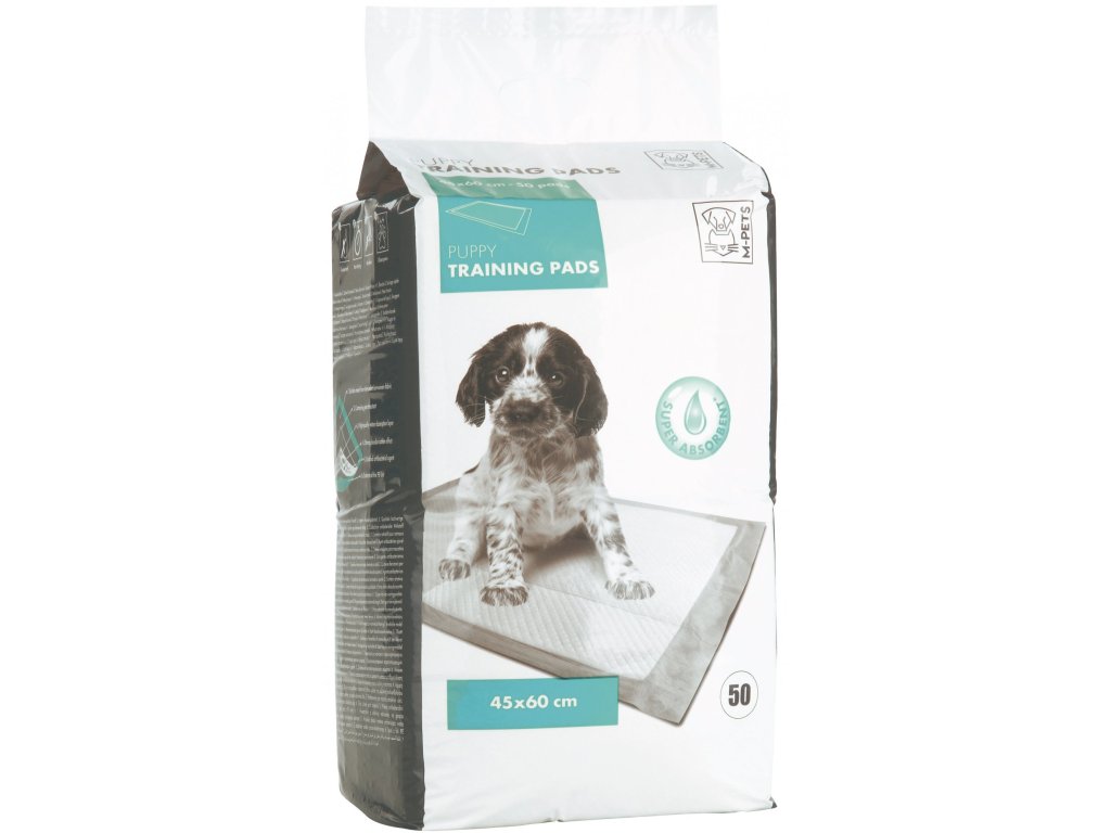 M-Pets Puppy trénovací podložka pro štěňataVynikající praktická pomůcka při výchově štěňat a péči o nemocné nebo staré psy, která zajišťuje lepší hygienu. Vhodné pro použití doma, ale také v klecích a přepravkách při cestování. Podložku lze také využít v pelíšku, kde vašemu mazlíčku může při zhoršeném zdravotním stavu pomoc s udržením hygienicky čistým místem. Trénovací podložka je nepropustná a vyrobená z rychleschnoucího materiálu, díky kterému se omezí nepříjemný zápach a vašemu mazlíčku zajistí suché a čisté tlapky. Dermatologicky testováno. Balení obsahuje 50 kusů o rozměru: 45 cm x 60 cm.