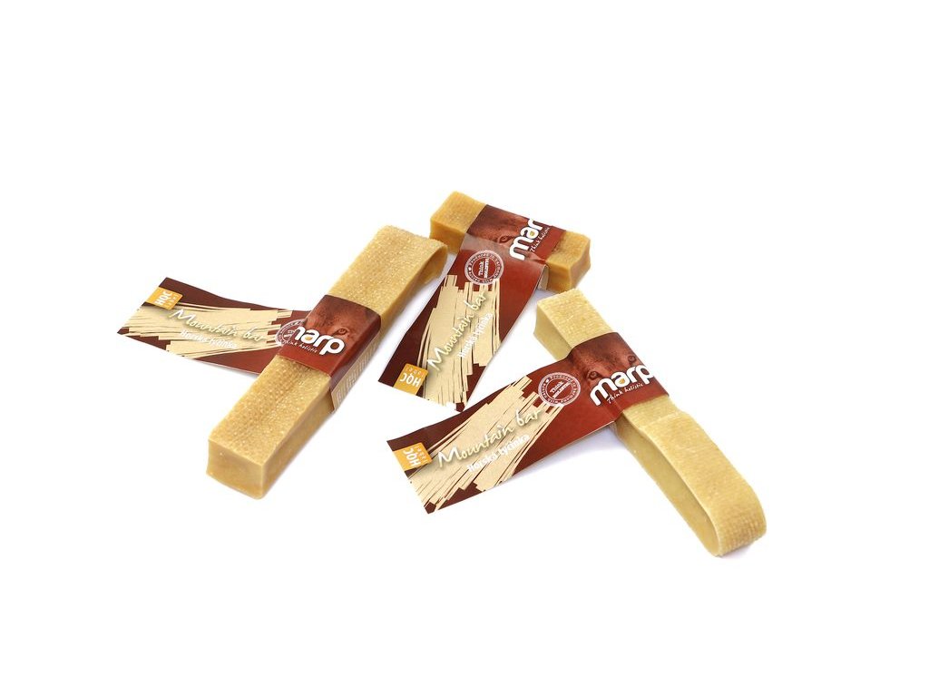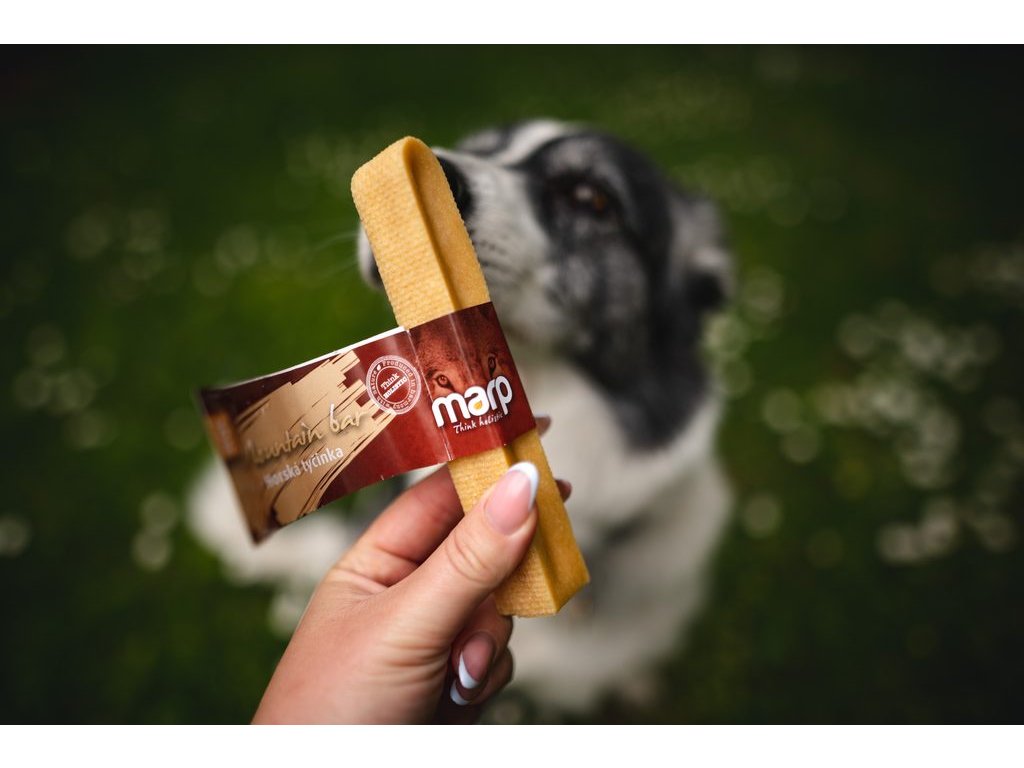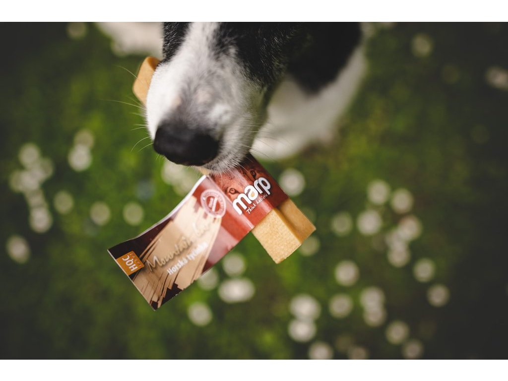 Hledáte pamlsek, který vašemu psovi udělá radost, zabaví ho a ještě mu pomůže? Už hledat nemusíte. Marp Holistic Horská tyčinka je 100% přírodní pamlsek vyrobený podle tradiční himalájské receptury. Pomáhá při dentální hygieně - pomáhá odstraňovat zubní plak a kámen. A psa zabaví na dlouhé hodiny. A to vše v naší holistické kvalitě - tedy bez umělých konzervantů, barviv nebo dalších potenciálně nebezpečných surovin.