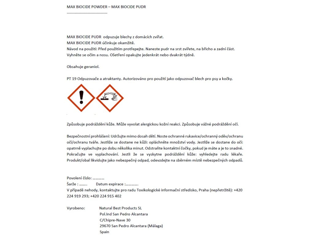 Max Biocide Powder repelentní pudr, pes a kočka 100 g !CZ!