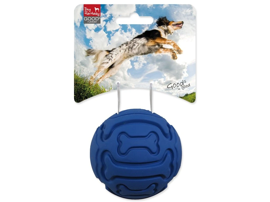 Míček Dog Fantasy gumový, vzor kost pískací modrý 7,5cm