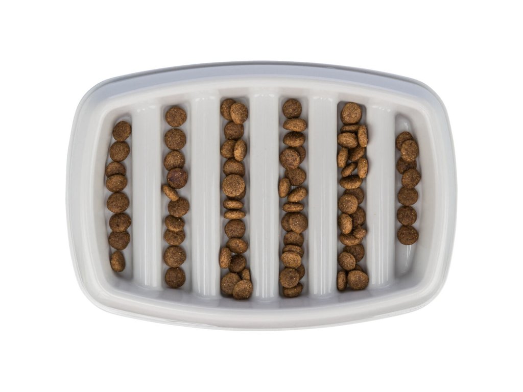 Miska k pomalému krmení, design mříž, 0,25l/21 ×14 cm, plast/TPR, šedá