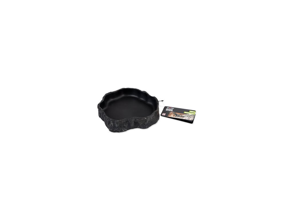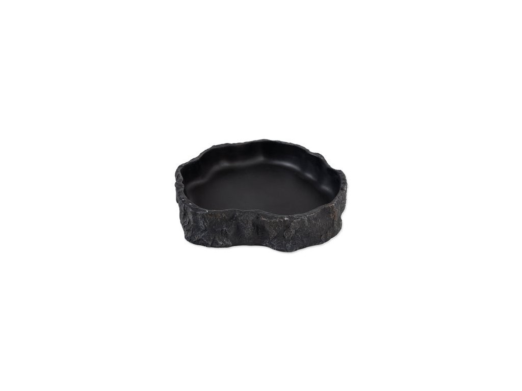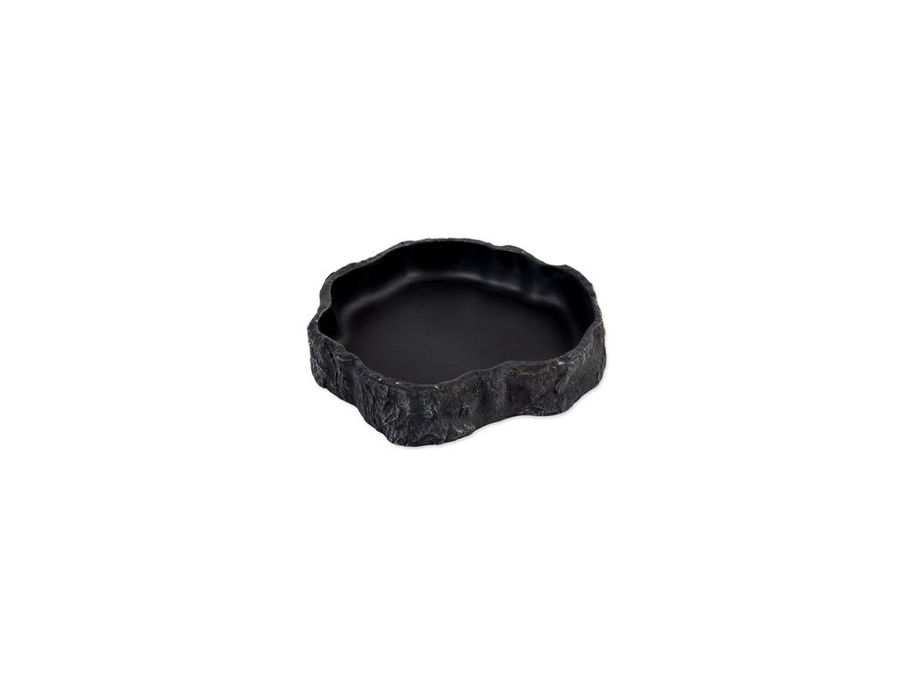 Miska na vodu či krmivo pro plazy, obojživelníky a další druhy zvířat, v černém designu.