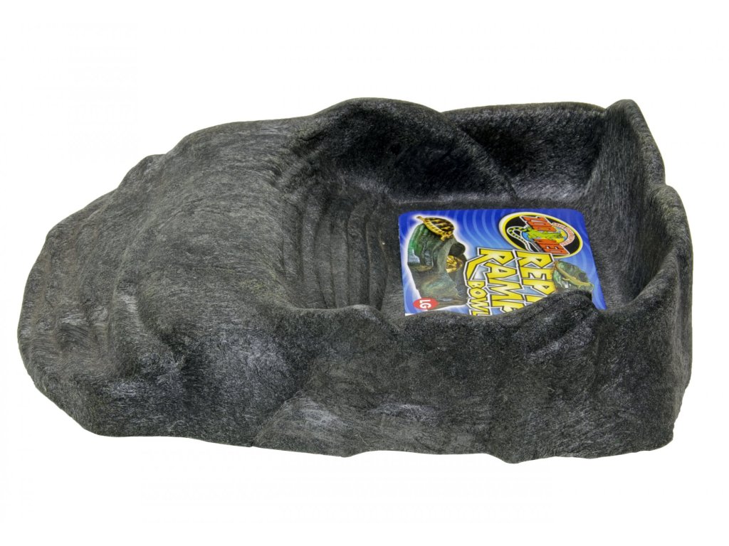 Miska Repti RampMiska na vodu pro terarijní zvířata v designu, který připomíná kámen, díky čemuž ladí do interiérů většiny terárií a neruší celkový estetický dojem. Miska je speciálně navržená tak, aby umožňovala zvířatům snadný přístup dovnitř i ven. Vnitřek misky je hladký a bez pórů pro snadné omývání a zamezení růstu bakterií. Lze použít i na krmivo. Vyrobeno ze 100% recyklovaného plastu. Bez BPA. Velikost L je vhodná pro středně velká zvířata jako jsou různí plazi, menší želvy apod.