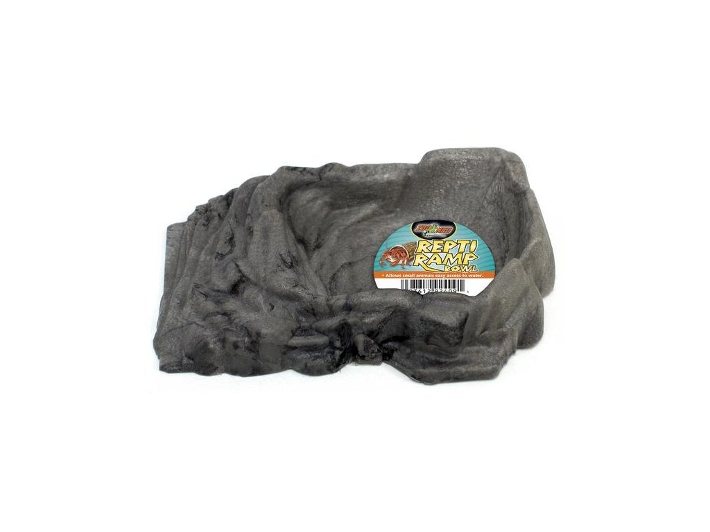 Miska Repti RampMiska na vodu pro terarijní zvířata v designu, který připomíná kámen, díky čemuž ladí do interiérů většiny terárií a neruší celkový estetický dojem. Miska je speciálně navržená tak, aby umožňovala zvířatům snadný přístup dovnitř i ven. Vnitřek misky je hladký a bez pórů pro snadné omývání a zamezení růstu bakterií. Lze použít i na krmivo. Vyrobeno ze 100% recyklovaného plastu. Bez BPA. Velikost S je vhodná pro drobná zvířata, jako jsou krabi, raci poustevníčci, obojživelníci atp.