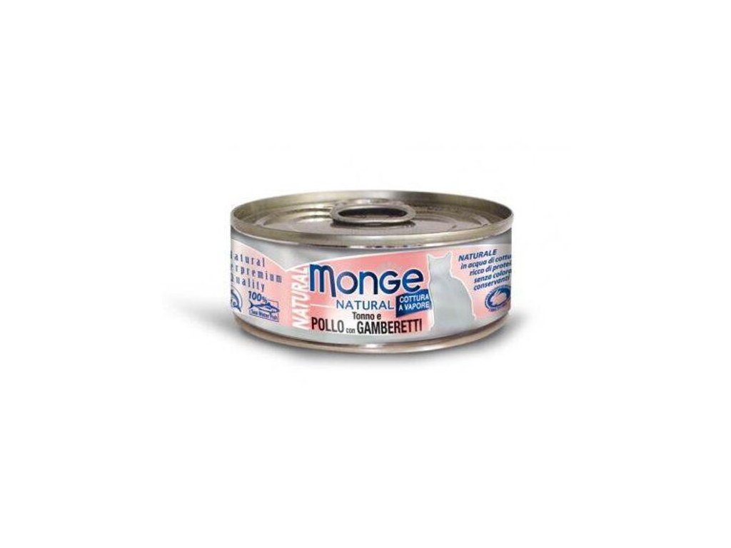 MONGE NATURAL tuňák s kousky kuřete a krevetami pro kočky 80 g