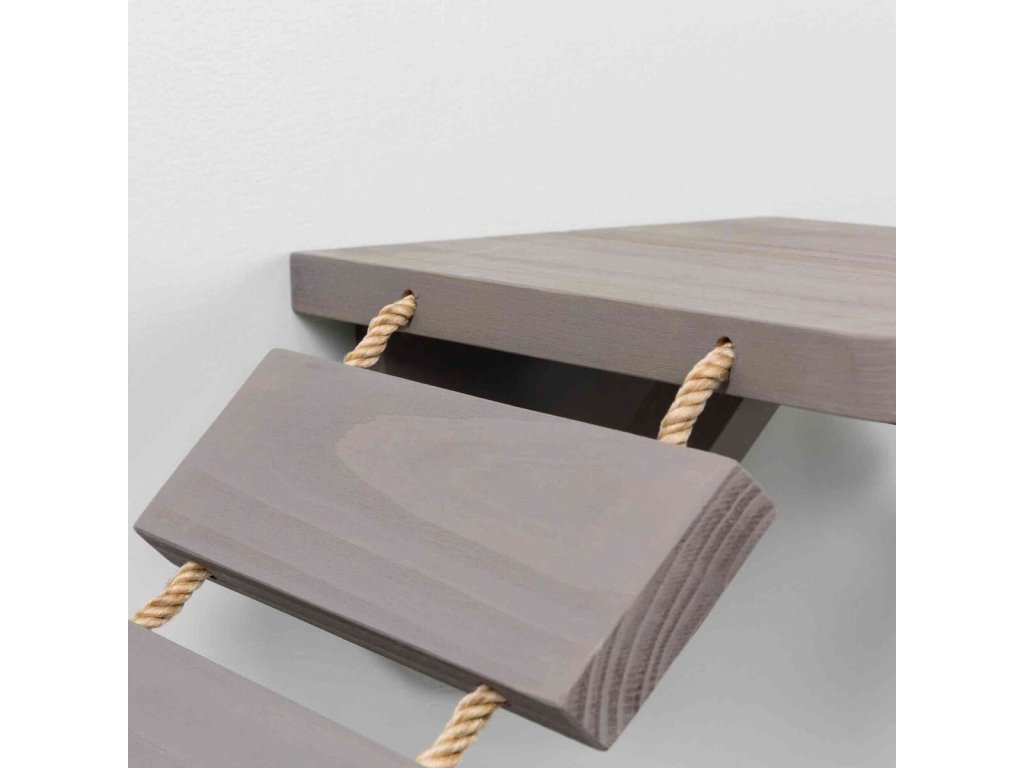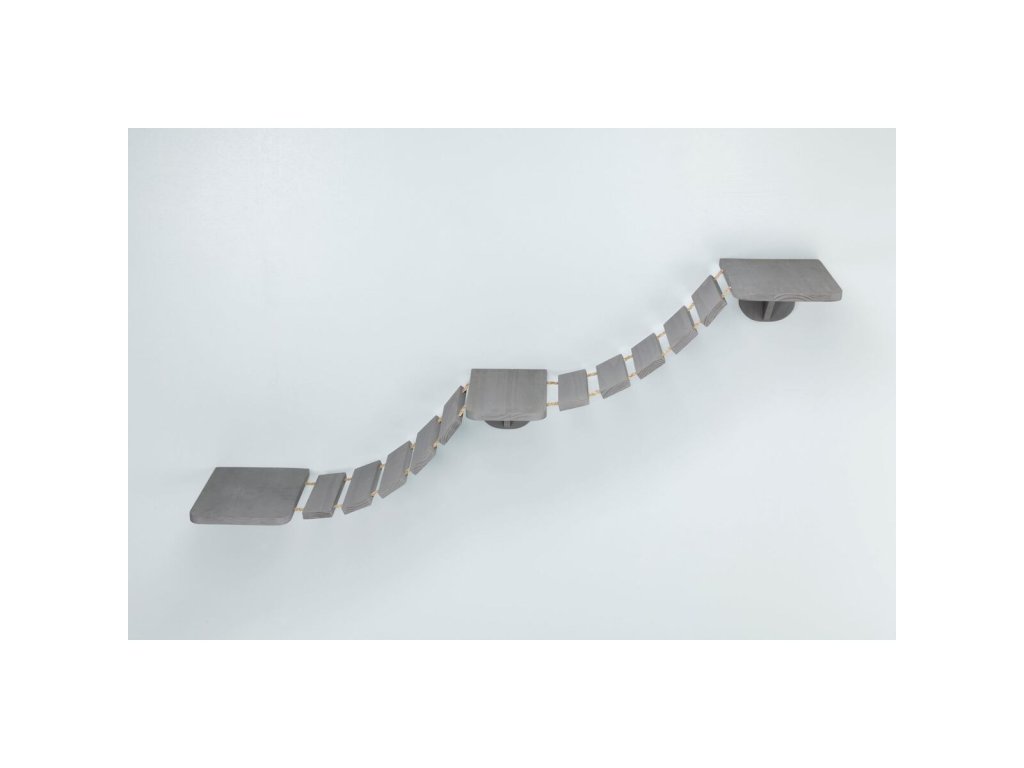 Šplhací žebřík k upevnění na stěnu, 3 platformy, 150x30cm, šedohnědá