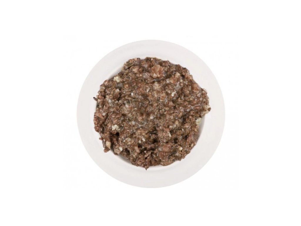 Beef with hearts: hovězí maso 60 %, hovězí srdce 25 %, hovězí vývar 11 %, kopřiva 2 %, minerály, prebiotika (FOS, MOS) 1 %.