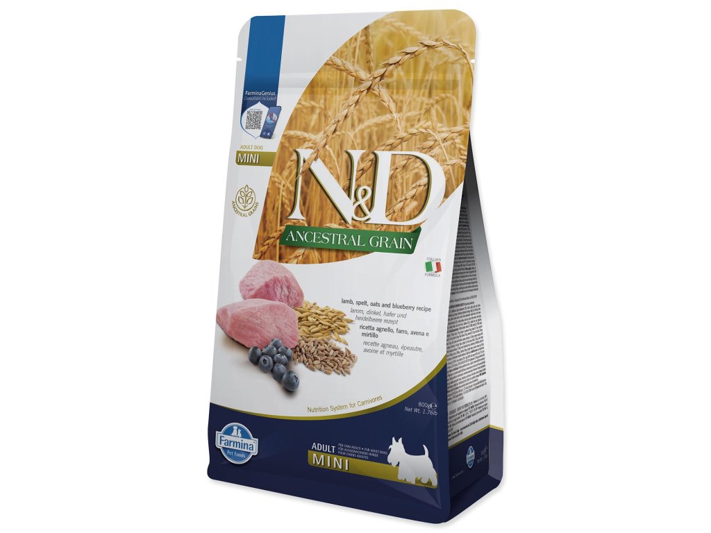 Krmivo N&D Dog Adult Mini Ancestral Grain Lamb, Spelt, Oats & Blueberry 0,8kg