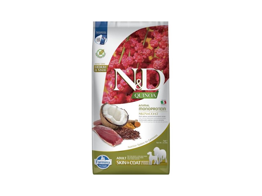 N&D QUINOA Dog GF Skin & Coat, Duck & Coconut Adult Medium & Maxi 7 kg - EXPIRACE 12.07.2025