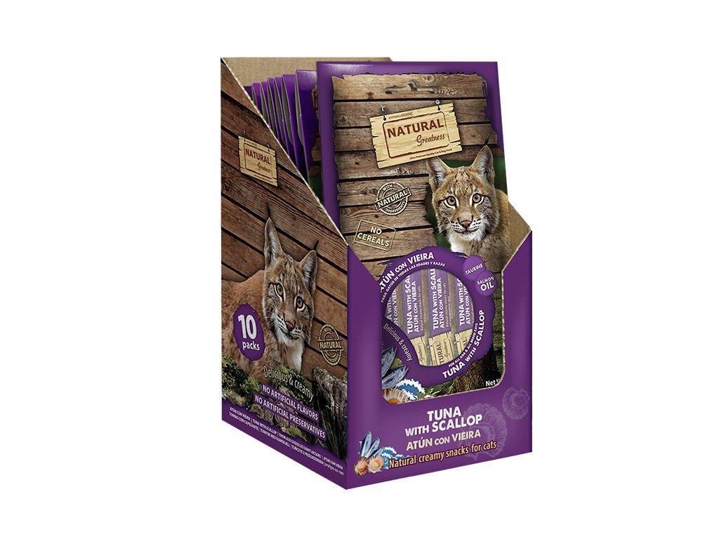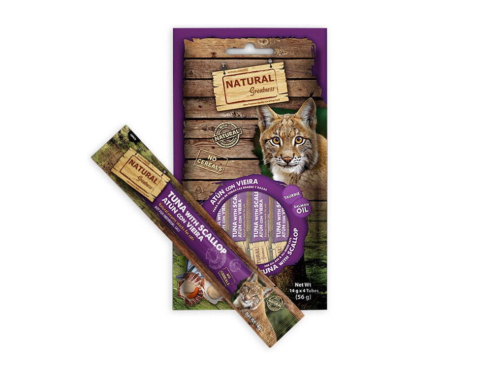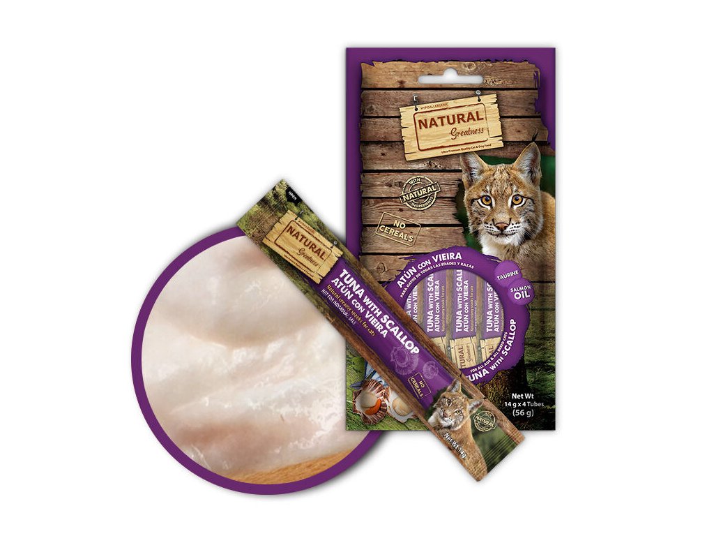 Natural Greatness Creamy DHA BRAIN, funkční pamlsek - tuňák, hřebenatka, 4 x 14 g