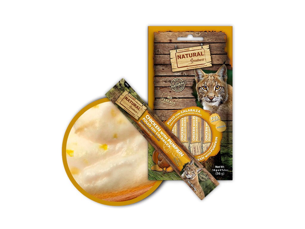 Natural Greatness Creamy DIGEST, funkční pamlsek - kuře, dýně, 4 x 14 g