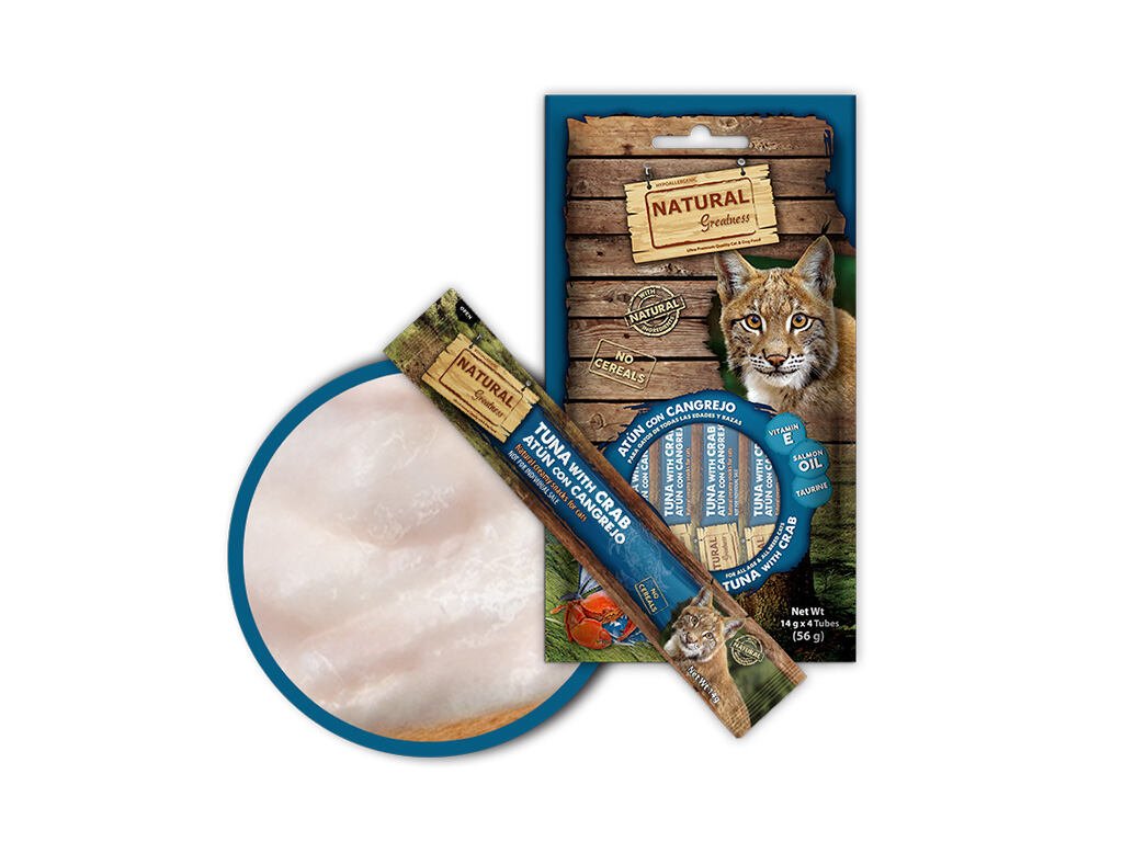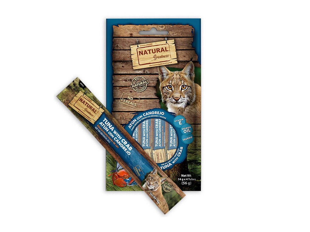Natural Greatness Creamy HAIR & SKIN, funkční pamlsek - tuňák, krab, 4 x 14 g