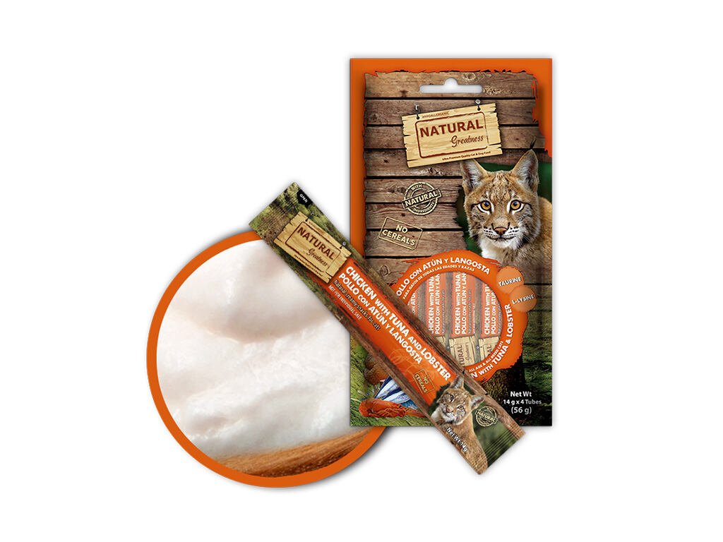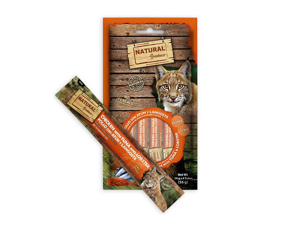 Natural Greatness Creamy IMUNITY, funkční pamlsek - kuře, tuňák, humr, 4 x 14 g