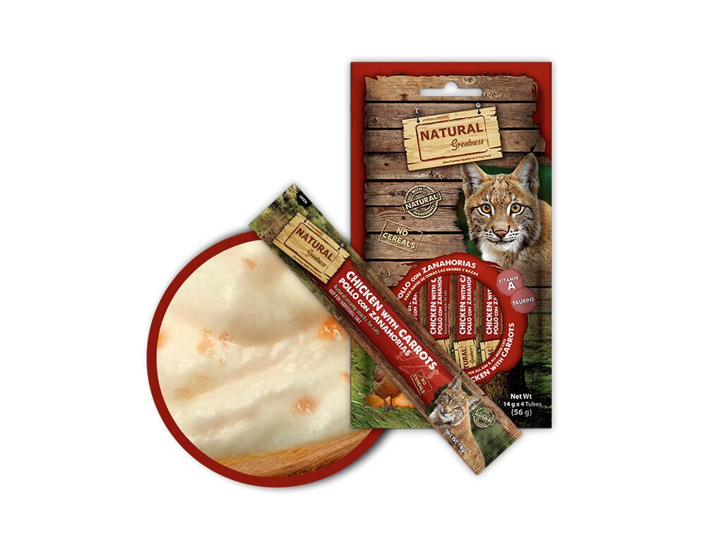 Natural Greatness Creamy VISION, funkční pamlsek - kuře, mrkev, 4 x 14 g