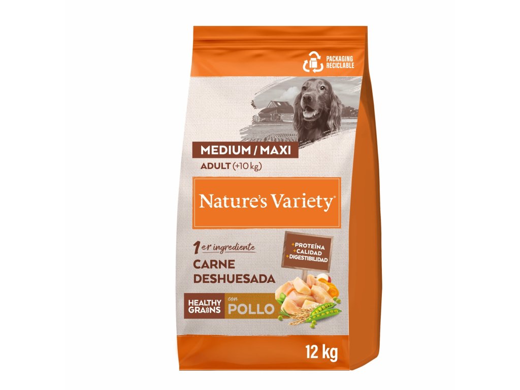 Nature´s Variety Original pro střední a velké psy s kuřecím masem.Kompletní a vyvážené krmivo pro psy středních a velkých plemen. S masem bez kostí jako hlavní složkou. Podporuje trávení a lepší výživu.