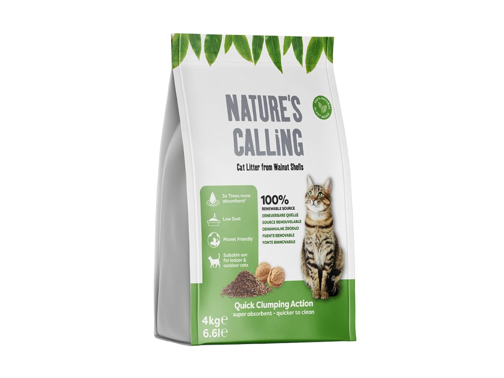 Nature's Calling stelivo pro kočky maximálně pohlcuje pachy, hrudkuje, je nenáročné na údržbu a je 100% přírodní a biologicky rozložitelné.Podestýlka je vyrobena z výstelky skořápek vlašských ořechů, které neutralizují zápach lépe než mnoho jiných typů podestýlek pro kočky, protože absorbují čpavek. Ořešáky mají zajímavé účinky a obsahují a jejich části působí desinfekčně, proto je tato podestýlka tak účinná proti zápachu.