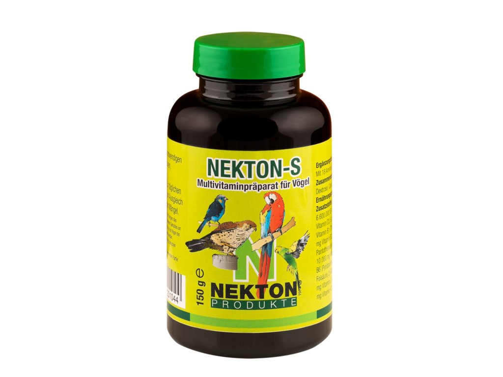NEKTON S podporuje metabolické procesy v těle ptáků a značně zvyšuje účinnost všech látek, obsažených v denní krmné dávce. NEKTON S je ptáky velmi dobře akceptován a přijímán. NEKTON S používají zoologické zahrady a chovatelé již více než 35 let.