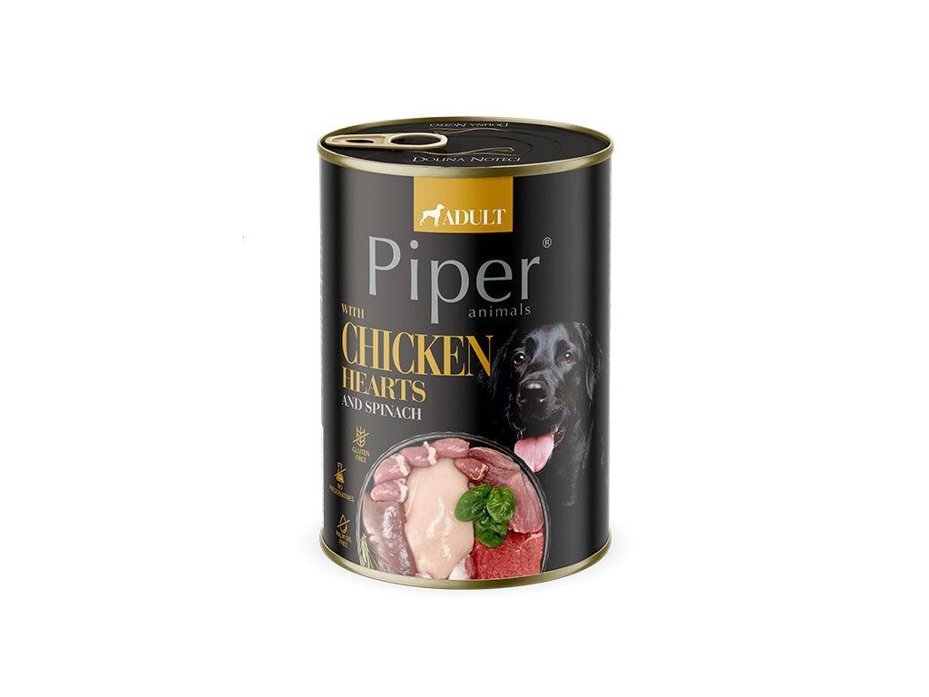 NEW PIPER s kuřecími srdíčky a špenátem, konzerva pro psy 400 g