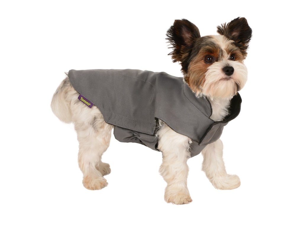 Bunda má pružný břišní díl, který se dobře přizpůsobí psí postavě , ovor na vodítko a gumový úchyt na ocásek.