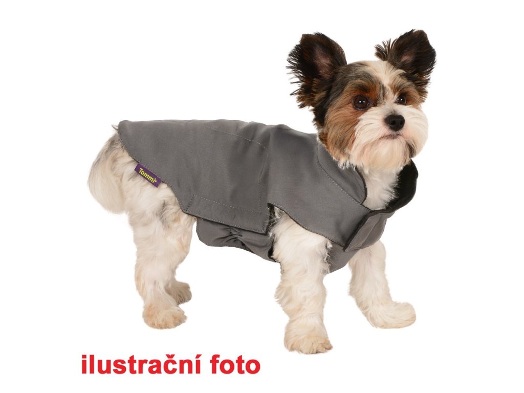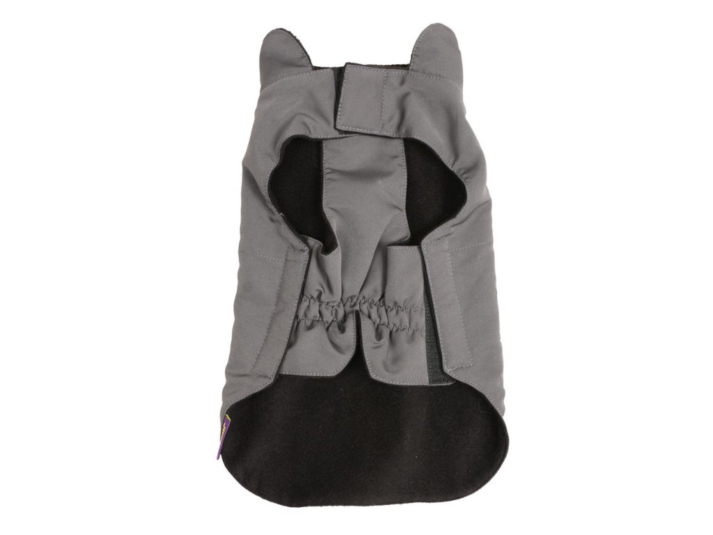 Bunda má pružný břišní díl, který se dobře přizpůsobí psí postavě , ovor na vodítko a gumový úchyt na ocásek.