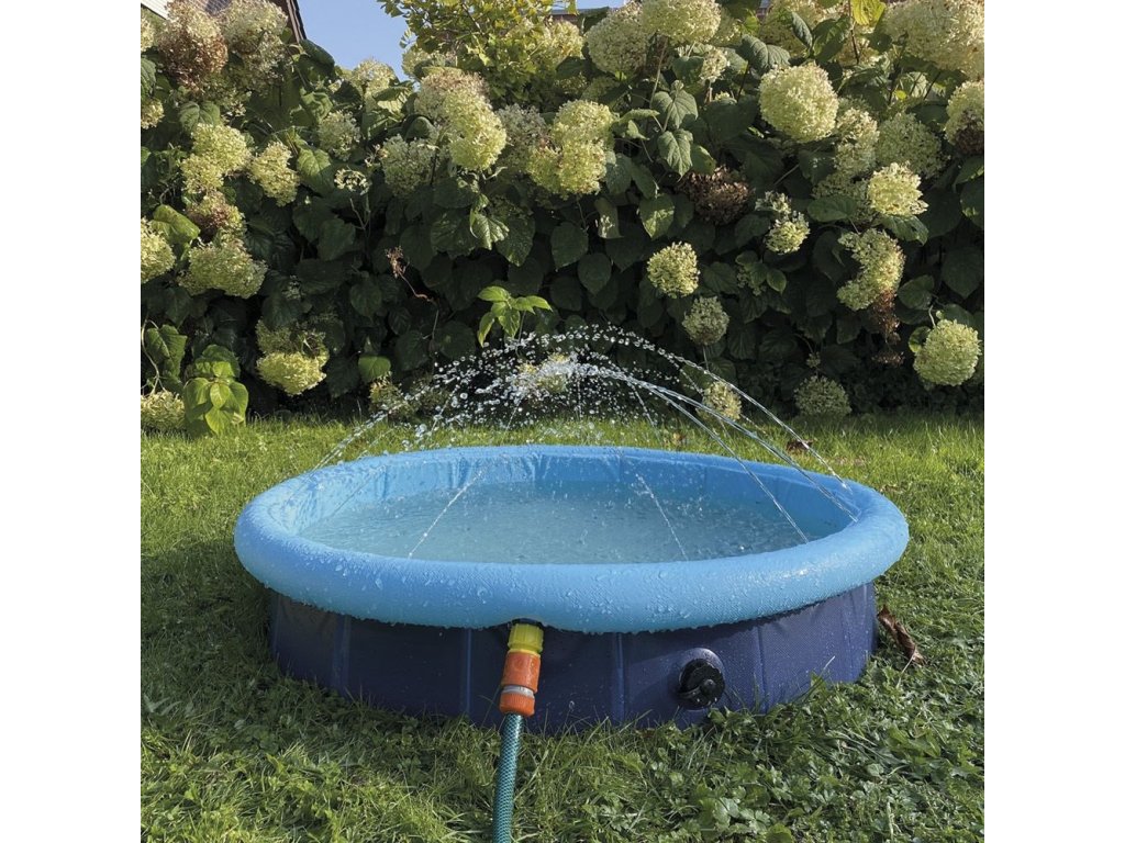 Bazének pro psy s malými otvory na okraji, ze kterých stříká voda. Možnost připojení k vodní hadici pomocí přiloženého konektoru. Zábavný a bezpečný způsob, jak ochladit své mazlíčky v horkých letních dnech! Benefity bazénku Nobby Splash Pool 2v1: rychlá a snadná montáž protiskluzová podlaha snadné čištění stříká po celém obvodu bazénku snadné připojení k zahradní hadici zajišťuje příjemné a bezpečné ochlazení Velikost: ø 120 x 30/35 cm. Návod na montáž: Roztáhněte bazének na rovné ploše, která nebude mít ostré hrany ideálně na trávě (bez klacků a kamenů) nebo na hladké dlažbě. U hrubé dlažby se spárami, např. zámkové, doporučujeme podložit bazének textílií určenou pod bazény. Do spojky pro zahradní hadici na bazénku vložte těsnění a přišroubujte druhou část konektoru (najdete uvnitř balení). Na spojky připojte rychlospojkou zahradní hadici a vodní zábava může začít. Upozornění: Nenechte psa do bazénu kousat. Ujistěte se, že Váš pes nemá příliš ostré drápy. Mohl by při dovádění v bazénu poškodit dno. Nenechávejte psa u bazénu bez dozoru. Dbejte na bezpečnost, v případě poškození přestaňte používat. Nevhodné pro děti do 36 měsíců.Doplňkové parametry