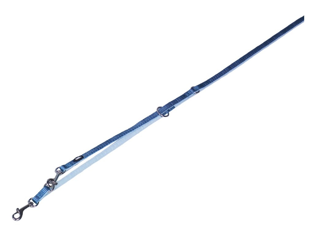 Přepínací ploché vodítko značky Nobby. Vrchní vrstva vodítka je z barevného nylonu. Neoprénová spodní vrstva zajistí pohodlnou manipulaci. Přezka je vyrobená z lesklého kovu. Velkou výhodou je měkké uchopení s neoprenovou podšívkou. Vodítko je možné přepínat na 3 různé délky díky kovovým kroužkům uchycených na vodítku. Vhodné pro štěňata a malá plemena psů. Délka vodítka: 2 m Šíře vodítka: 10 mm Barva: světle modrá. Doporučujeme kombinovat z obojkem nebo postrojem ze stejné kolekce - Nobby CLASSIC PRENO MiniDoplňkové parametry