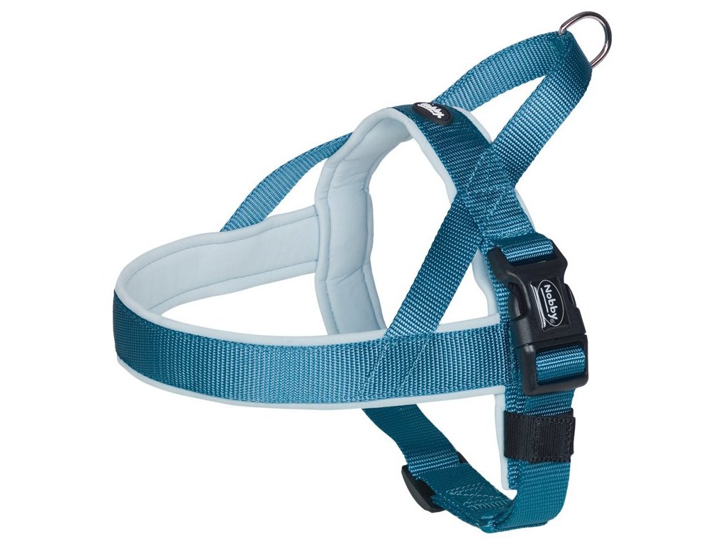 Norský postroj pro psy s neoprénovou podšívkou se vyznačuje pohodlným a snadným oblékáním. Je vhodný jak na každodenní procházky, tak pro tréninky nejrůznějších sportů (agility, flyball - zde poslouží především pohodlné očko na zádech pro snadnou manipulaci se psem). Velikost: délka hrudní části 42 cm šířka popruhů 25/35 mm plynule nastavitelný obvod hrudníku 50-64 cm Materiál: horní strana: světle modrý nylon spodní strana: světle modrý neoprén Neoprenová podšívka je šetrná k srsti psa, ale také rychle schne, když se pes v létě rád koupe. Pohodlné polstrování z neoprénu v oblasti hrudníku, krku a ramen. Optimální pohodlí při nošení a také zajištění, že psa při běhu postroj nedře a nevytrhává srst. Snadné a rychlé nasazování postroje. Rychlé zapnutí vodítka pomocí horního poutka. Norský postroj byl vyvinut speciálně pro aktivní psy a chovatele psů, a proto je ideální pro jízdu na kole nebo jogging. Postroj zaručuje Vašemu psovi pohodlné nošení, i když mírně táhne. Všité držadlo na obojku umožňuje majiteli psa, aby mohl rychle reagovat v nastalé situaci a případně nechal psa jít u nohy. Postroj Nobby zaručuje vysokou kvalitu a funkčnost v kombinaci s atraktivním designem.Doplňkové parametry