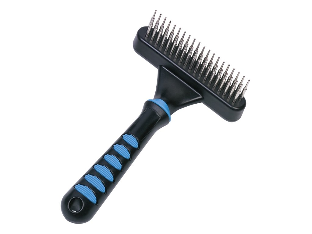 Vyčesávací hrablo Nobby z kolekce Comfortline je vhodné zejména na péči o dlouhou a hustou srst a citlivé psy. 39 dlouhých, rotujících zubů ve dvou řadách se přizpůsobují tlaku na pokožku, a proto jsou obzvlášť jemné a šetrné. Tím zajišťují, že podsada může být jemně odstraněna. To udržuje srst zdravou a vláčnou. Plastová rukojeť je v ruce bezpečná a pohodlná a zajišťuje pohodlné čištění.Doplňkové parametry