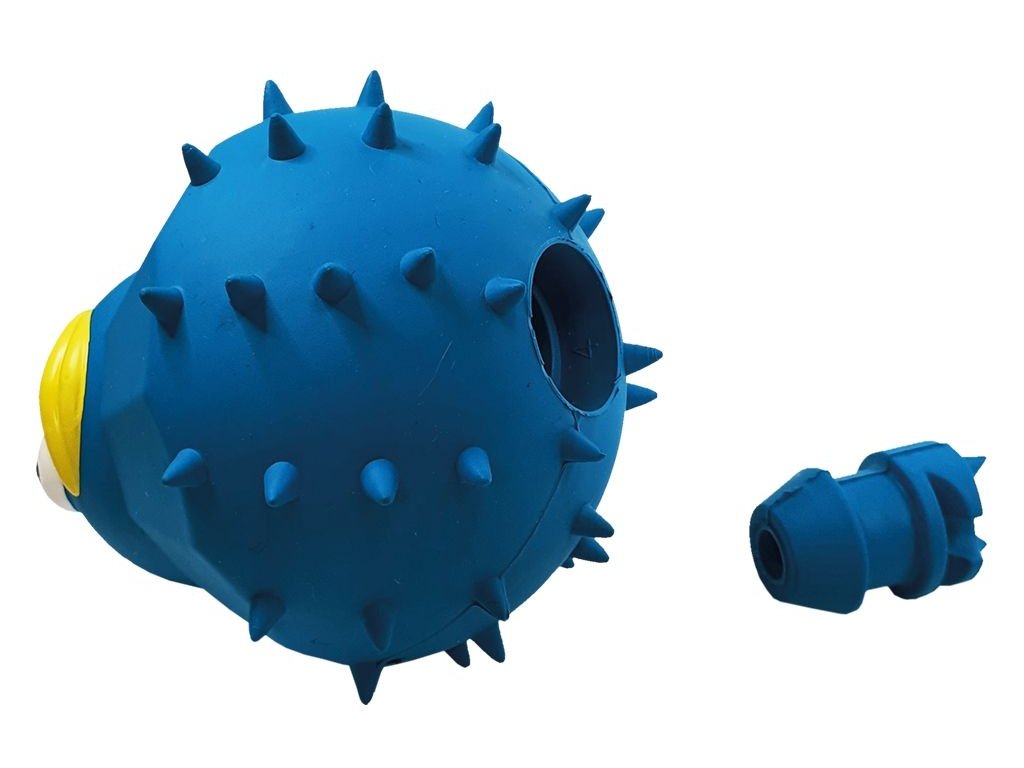 Hračka pro psy s chladivým efektem. Hračka může být naplněna vodou a zmražena, pro následné ochlazení v horkých dnech. Při okusování hračka voda vytéká ven pomocí pórů na hračce. Vhodné také pro štěňata, usnadňuje prořezávání zubů. Materiál: gumový Barva: modrá Velikost: 9 cm Použití: Gumový uzávěr na hračce otevřete tenkým předmětem (např. tenkým šroubovákem), přes malé otvory, naplňte vodou, zajistěte uzávěr a hračku jednoduše zamrazte. Upozornění: Tak jako u každého jiného produktu byste měli dohlédnout na hru Vašeho zvířete s touto hračkou. Prosíme, abyste pravidelně hračku kontrolovali, zda není poškozená, a v případě odhaleného defektu ji vyměnili. V opačném případě by nemohlo být vyloučeno zranění zvířete. Není vhodné pro děti.Doplňkové parametry