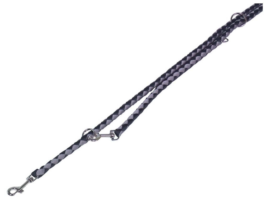 Kulaté přepínací vodítko Nobby pro psy z pleteného nylonu. S kovovou karabinou (2x) pro rychlé připnutí k obojku nebo postroji. Pomocí karabiny a kovového kroužku lze vodítko nastavit na 3 různé délky. Vhodné pro plemena malých a středních psů. Snadná údržba - při znečištění jednoduše opláchnete vodou Velikost S-M Délka vodítka: 200 cm Tloušťka vodítka: 12 mm Barva černá s šedou.Doplňkové parametry