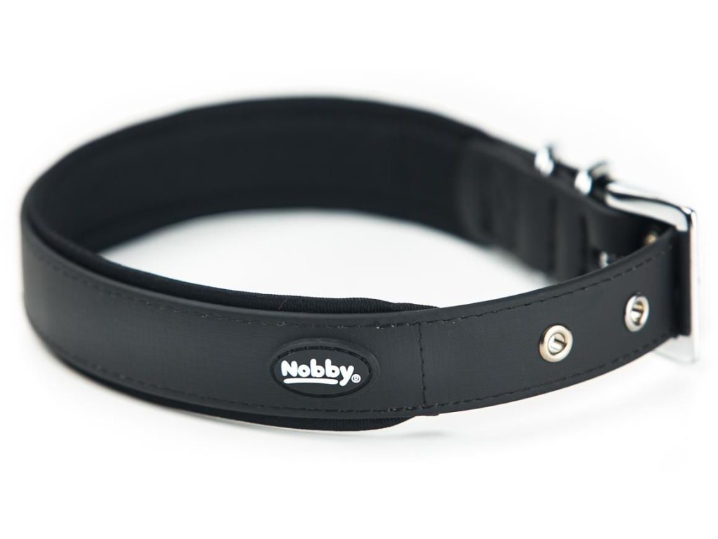 Plastový obojek z kolekce Nobby COVER je vyroben ze dvou vrstev (polyesterová tkanina s nánosem PVC + neoprénová podšívka). Neoprén je velice měkký a poddajný, nenasákavý, takže obojek po koupání pejska nezapáchá. Obojek je ohebný a zároveň velmi pevný. Velmi snadno se čistí, lze jej dezinfikovat. Pro obvod krku 45-55cm Šířka obojku 25mm Barva černá (PVC) + černé neoprénové polstrování. Výhody: odolnost vůči UV záření antibakteriální (odolnost proti plísním) voděodolnýDoplňkové parametry