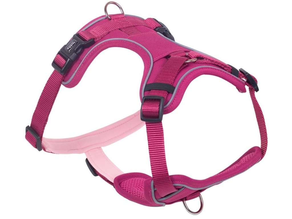 Ergonomicky tvarovaný postroj Nobby MAILO pro aktivní psy. Postroj je vhodný také pro každodenní použití. Velkou výhodou postroje je 5 nastavitelných popruhů a tak padne každému plemeni. Je vyroben z polstrované síťoviny a nylonu s jasně viditelnými reflexními proužky poskytuje dodatečnou bezpečnost na silnici. Nabízí vašemu psovi optimální pohodlí při nošení a díky ergonomickému tvaru se snadno a rychle nasazuje. Postroj zajišťuje volnost pohybu a rozložení tahu mimo krční páteř. Dvě možnosti připnutí vodítka, přizpůsobení obvodu kolem krku i hrudníku. Velikost postroje vybírejte hlavně dle obvodu hrudníku psa. Hlavní přednosti postroje Nobby MAILO: optimální komfort nošení dvojité zapínání snadné a rychlé nasazování nastavitelný obvod krku a hrudníku prodyšný síťovinový materiál v podšívce s reflexními prvky s 5 nastavitelnými popruhy se dvěma D-kroužky na zádech a hrudi pro lepší kontrolu Velikost M: Šířka popruhů: 20 mm Obvod kolem krku: 35-50 cm Obvod kolem hrudník: 60-75 cm Barva: růžováDoplňkové parametry