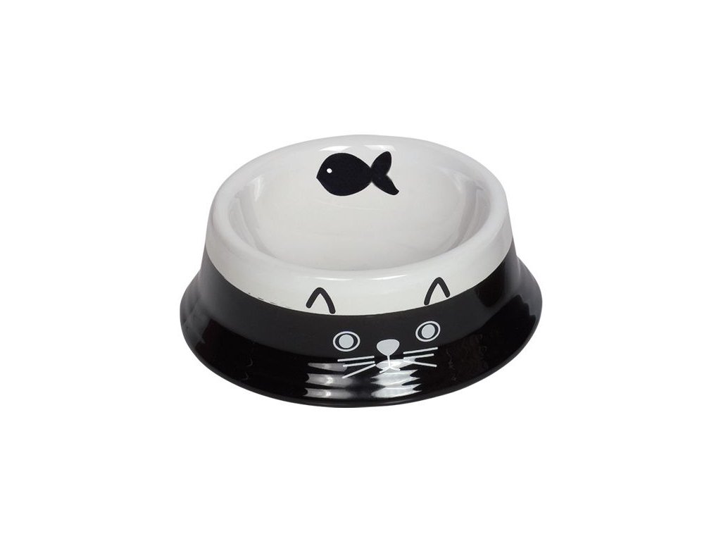 Keramická miska pro kočky s lesklou glazurou vhodná na krmivo nebo vodu. Celková velikost ø 14 cm. Barva černobílá. Díky větší základně a vyšší hmotnosti je miska stabilní a drží na místě. Snadno omyvatelná.Doplňkové parametry