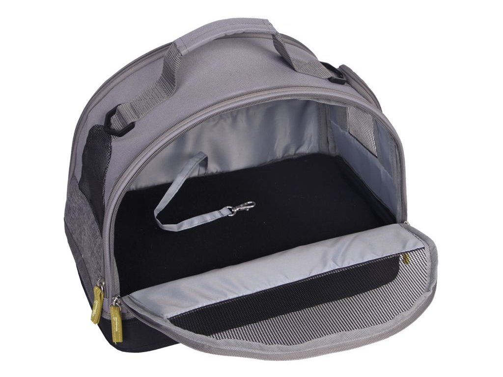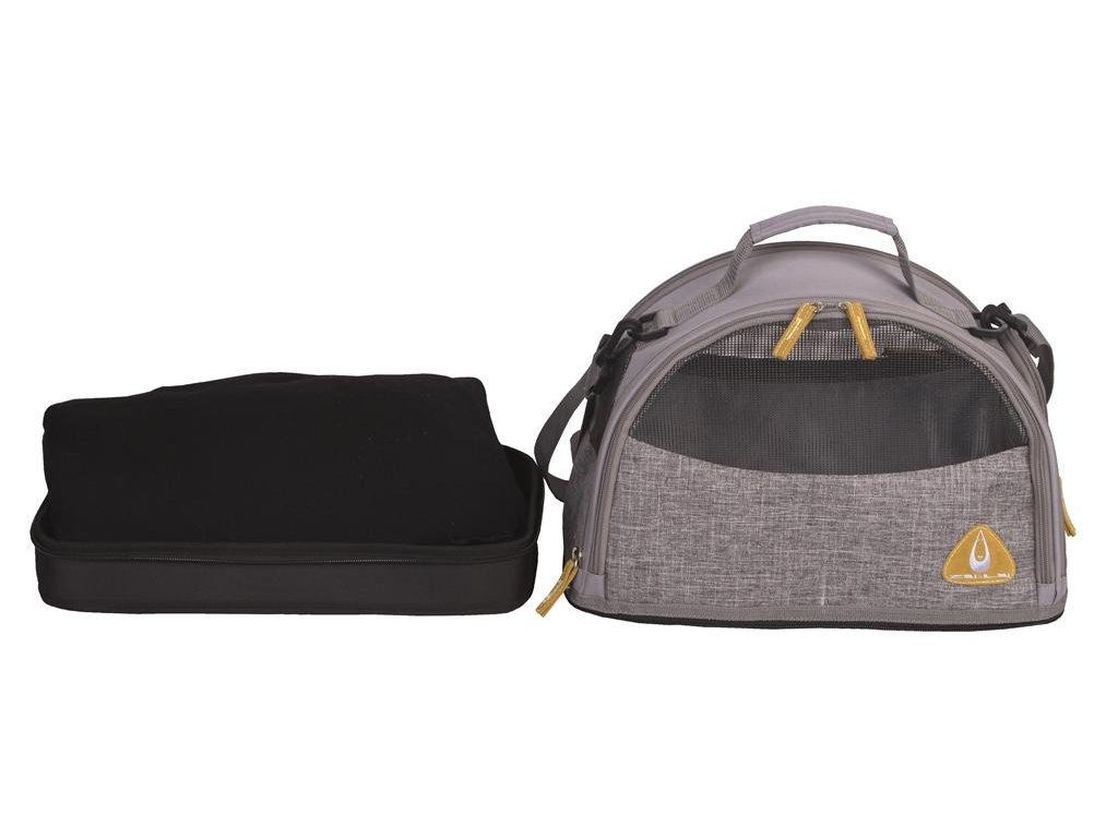 Přepravní taška Nobby MALUKU 3v1 pro kočky a malé psy do max. 4 kg. Vyrobená z vysoce kvalitních omyvatelného materiálu (mikrovlákno). S rukojetí a ramenní popruhem Kombinace 3v1 - použití jako přepravní taška, bouda-kukaň a pelíšek. Tašku je možné upevnit na sedadlo v automobilu pomocí smyčky na autopás. Větrání zajištěno otvory a okny ze 4 stran. Boční strany lze otevřít úplně vzniknou tak velké otvory. Možnost otevřít jen malé okenko, tak aby zvíře mohlo vystrčit hlavu. Integrovaná karabina na krátkém vodítku uvnitř tašky zabraňuje vašemu pejskovi ve vyskočení ven. Velká kapsa na chovatelské potřeby. Rozměry 38 x 24 x 28,5 cm Barva šedá.Doplňkové parametry