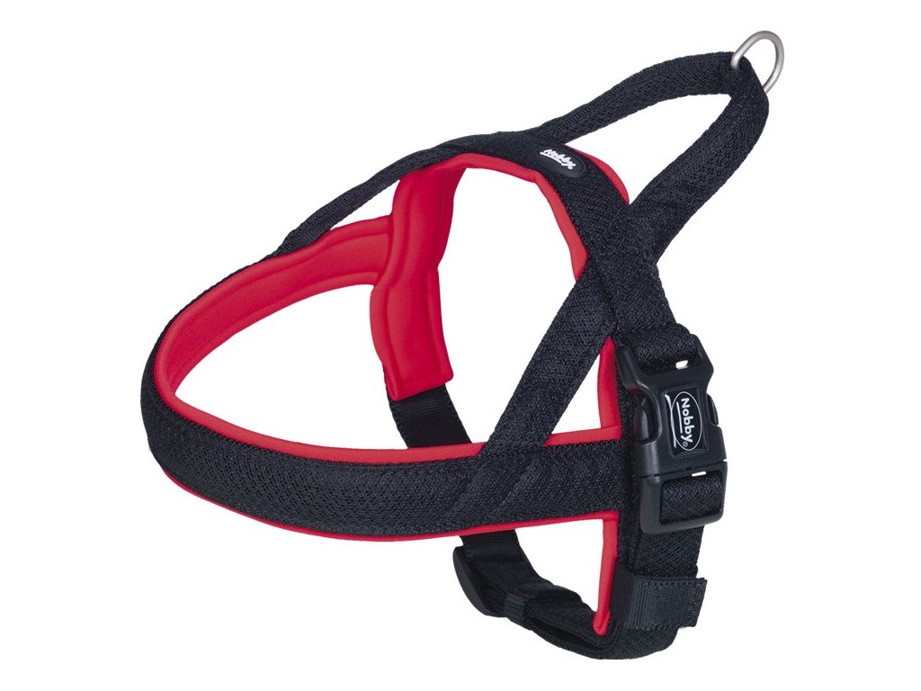 Norský postroj pro psy vyrobený z nylonu a neoprénu. Vyznačuje pohodlným a snadným oblékáním. Je vhodný jak na každodenní procházky, tak pro tréninky nejrůznějších sportů (agility, flyball - zde poslouží především pohodlné očko na zádech pro snadnou manipulaci se psem). Vrchní vrstva z nylonu vzhledově připomíná síťku. Matné stříbrné kovové prvky (kroužky + karabina). Velikost: délka hrudní části 42 cm šířka popruhů 25/35 mm plynule nastavitelný obvod hrudníku 50-64 cm Neoprenová podšívka je šetrná k srsti psa, ale také rychle schne, když se pes v létě rád koupe. Pohodlné polstrování z neoprénu v oblasti hrudníku, krku a ramen. Optimální pohodlí při nošení a také zajištění, že psa při běhu postroj nedře a nevytrhává srst. Snadné a rychlé nasazování postroje. Rychlé zapnutí vodítka pomocí horního poutka. Norský postroj byl vyvinut speciálně pro aktivní psy a chovatele psů, a proto je ideální pro jízdu na kole nebo jogging. Postroj zaručuje Vašemu psovi pohodlné nošení, i když mírně táhne. Všité držadlo na obojku umožňuje majiteli psa, aby mohl rychle reagovat v nastalé situaci a případně nechal psa jít u nohy. Postroj Nobby zaručuje vysokou kvalitu a funkčnost v kombinaci s atraktivním designem.Doplňkové parametry