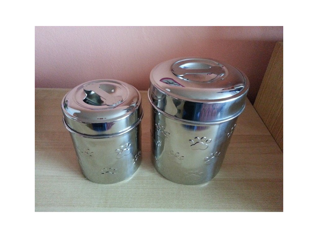 Oblíbené praktické dózy na doplňkové krmivo. Vyrobeno z ušlechtilé nerezové ocely. Balení obsahuje 2 ks (900 ml, rozměr 12 x ø11cm + objem 1600ml, rozměr 15 x ø13cm) K uchování čerstvosti pamlsků nebo krmiva.Doplňkové parametry