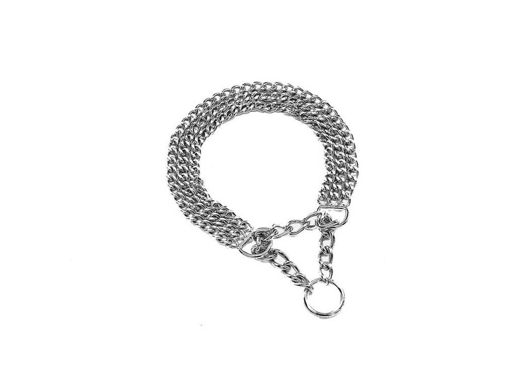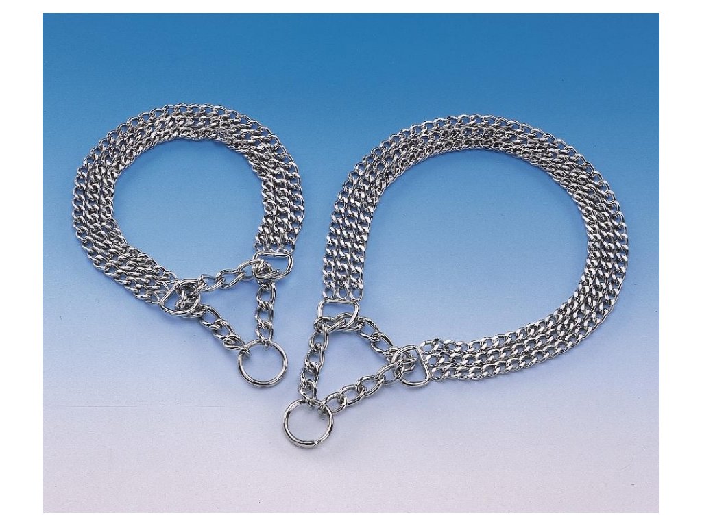 Třířadý polostahovací řetízkový obojek Pochromovaný materiál. Stahování je zabezpečené krátkým řetízkem, který je vložený mezi dvě oka na konci řetízku Velikost 40 cm. (min 30 cm - max. 40 cm.) Tloušťka očka 2 mmDoplňkové parametry
