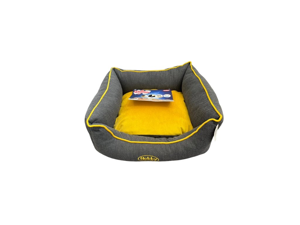 Nobby pelech pro psy hranatý šedý se žlutým polštářem 45×40×18 cm
