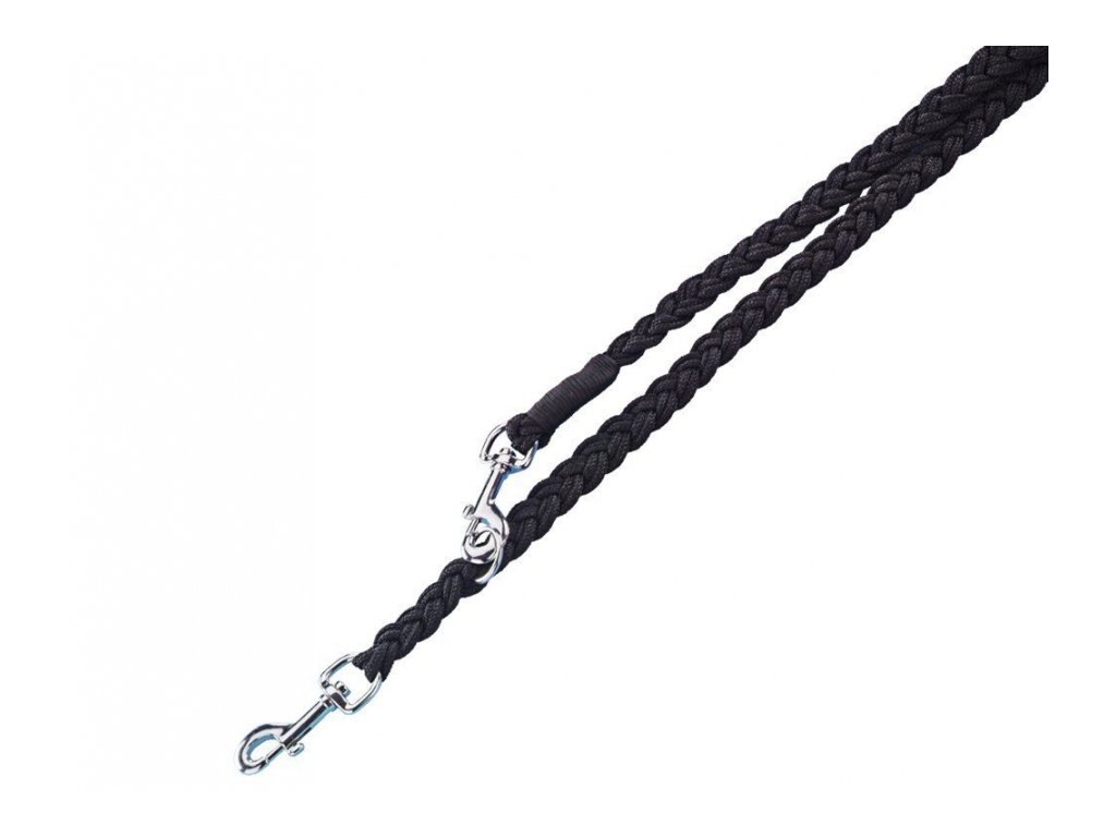 Pevné propletené vodítko Nobby. Materiál nylonový. Vhodné pro temperamentní pejsky a zároveň je použitelné jako elegantní vodítko. Velmi pevné provedení. Délka 2m, šíře 25mm. Pomocí kovových oček na vodítku je možné přepnutí do 3 různých délek. Barva černá.Doplňkové parametry