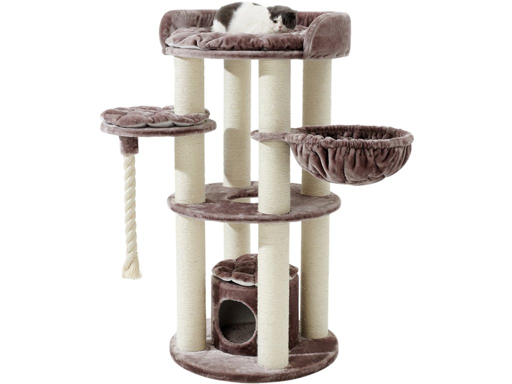 Každá kočka má potřebu brousit si své drápky. Proto by měla mít v bytě, kde je chována, odpovídající možnost tuto svou potřebu realizovat. V opačném případě pak bude nucena si najít pro páníčka nepříjemnou alternativu jako je např. sedačka, nábytek, křeslo, postel či koberec. Parametry škrabadla Arda: výška 138 cm barva cappuccino se světlým sisalem velikost sisalových kmenů ø 12 cm základna ø 70 cm domeček ø 35 x 28 cm deska s lanem ø 45 cm lenoška ø 45 cm horní odpočívadlo ø 50 x 10 cm Vysoce kvalitní a pevné německé škrabadlo Nobby.Doplňkové parametry