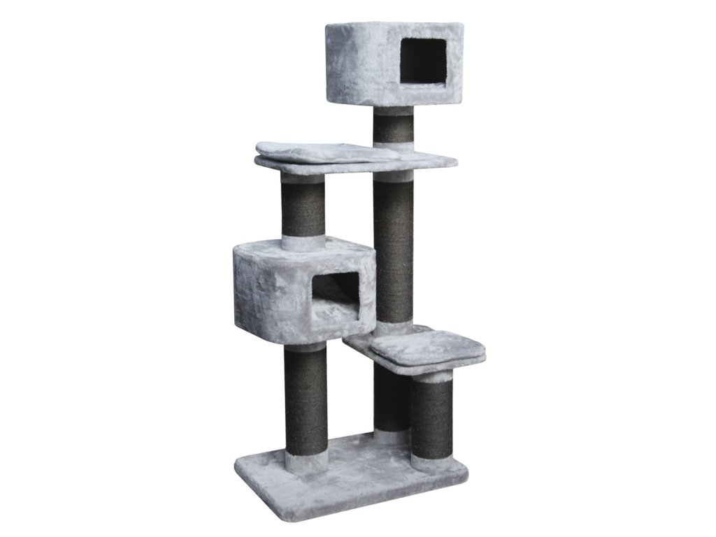 Každá kočka má potřebu brousit si své drápky. Proto by měla mít v bytě, kde je chována, odpovídající možnost tuto svou potřebu realizovat. V opačném případě pak bude nucena si najít pro páníčka nepříjemnou alternativu jako je např. sedačka, nábytek, křeslo, postel či koberec. Parametry škrabadla Nobby Loano: výška 164 cm barva šedá s tmavým sisalem velikost sisalových kmenů ø 15 cm základna 70 x 50 cm domečky 40 x 40 x 27 cm deska s polštářkem 50 x 35 cm polštářek 30 x 35 cm polštářek horní 40 x 40 cm Vysoce kvalitní a pevné německé škrabadlo Nobby.Doplňkové parametry
