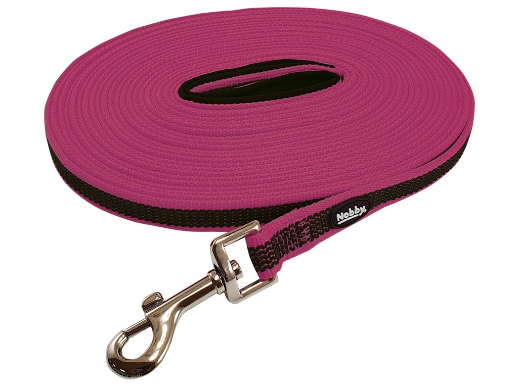 Tréninkové stopovací vodítko Nobby s pogumovanou vnější stranou zakončené klasickou kovovou karabinou. Vyrobené z pevného nylonu. Vhodné pro nácvik pachových prací, nácvik přivolání či běžnou procházku se psem. Výhodou vodítka je neoprenová polstrovaná ruční smyčka, která Vám zajistí pohodlný úchop. Vodítko je díky vnější úpravě protiskluzové. Barva růžová. Délka: 15 m. Šíře: 17 mm. Stopovací vodítka jsou nezbytnou pomůckou pro výcvik Vašeho pejska. Na stopovačce je Váš pejsek snadno manipulovatelný, a tak se může rychle naučit povel "ke mně" a případně i odnaučit nějaké zlozvyky.Doplňkové parametry