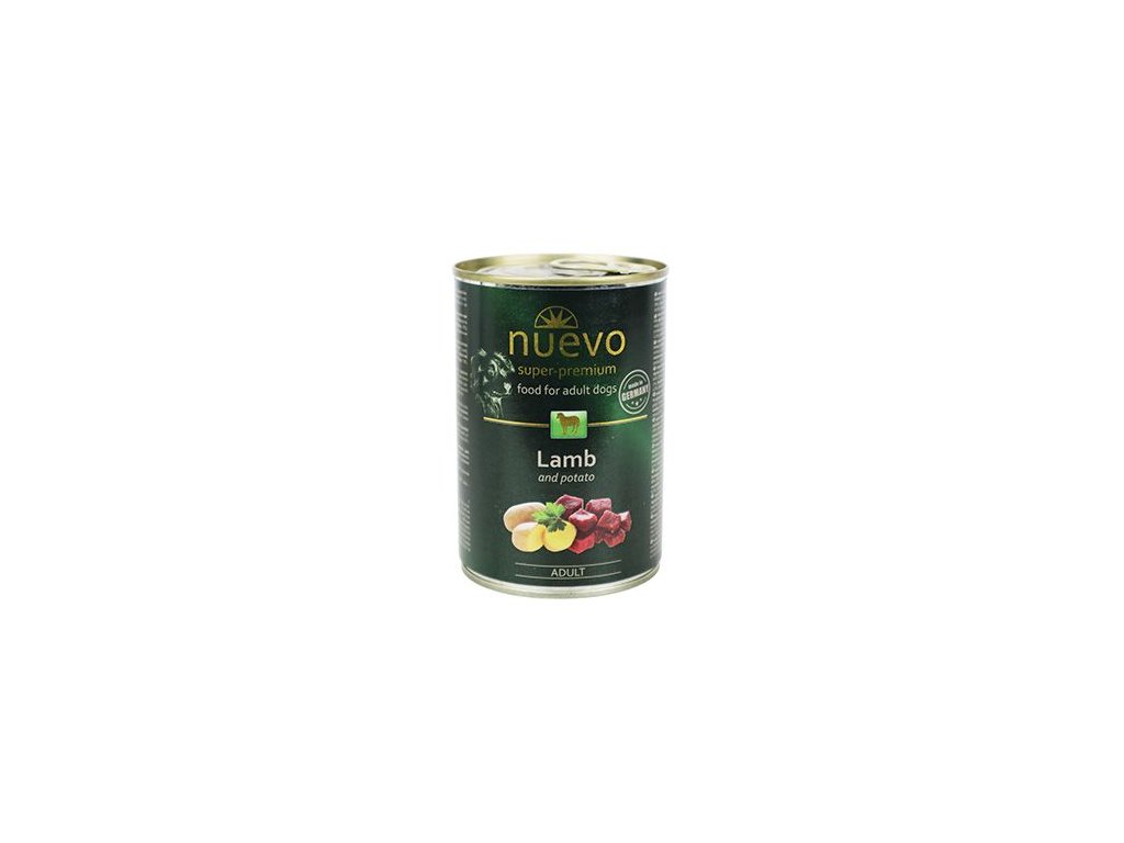 Konzerva Nuevo Jehněčí s bramborem je vhodná pro dospělé psy všech plemen, s obsahem jehněčího masa s bramborem. Výběrové, jehněčí maso je vysoce obohaceno o potřebný zdroj bílkovin, naopak brambory skvěle podporují správné trávení.